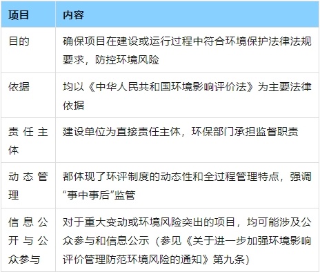 三者雖然在操作流程和法律效力上有所不同,但都體現(xiàn)了我國(guó)環(huán)評(píng)制度“全生命周期”管理的特點(diǎn),旨在保障建設(shè)項(xiàng)目全過(guò)程中的環(huán)境安全與合規(guī)管理。